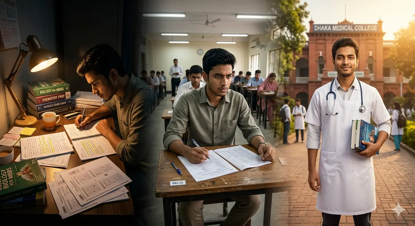 Getting into a medical college in Bangladesh isn’t just about studying hard. It’s about understanding the system, playing smart, and avoiding mistakes most students don’t even realize they’re making. This guide breaks everything down—clearly, honestly, and in a way that helps you make decisions. What Is the Medical Admission Test in Bangladesh? The MBBS admission test is a centralized MCQ exam conducted by the Directorate General of Health Services (DGHS). Quick Answer (Featured Snippet Format) Exam Type: MCQ Total Marks: 100 Duration: 60 minutes Negative Marking: 0.25 per wrong answer Conducting Body: DGHS Official source (plain text): http://dghs.gov.bd What Subjects Are Included in the MBBS Admission Test? Subject-wise Marks Distribution Subject Marks Biology 30 Chemistry 25 Physics 20 English 15 General Knowledge 10 Expert Insight: Biology carries the highest weight. Strong Biology can compensate for weaker areas — but the reverse rarely works. How Is the Final Merit Score Calculated? Your admission isn’t based on the test alone. Merit Calculation Formula Component Weight Admission Test 100 SSC GPA × 15 75 (max) HSC GPA × 25 125 (max) Total possible…